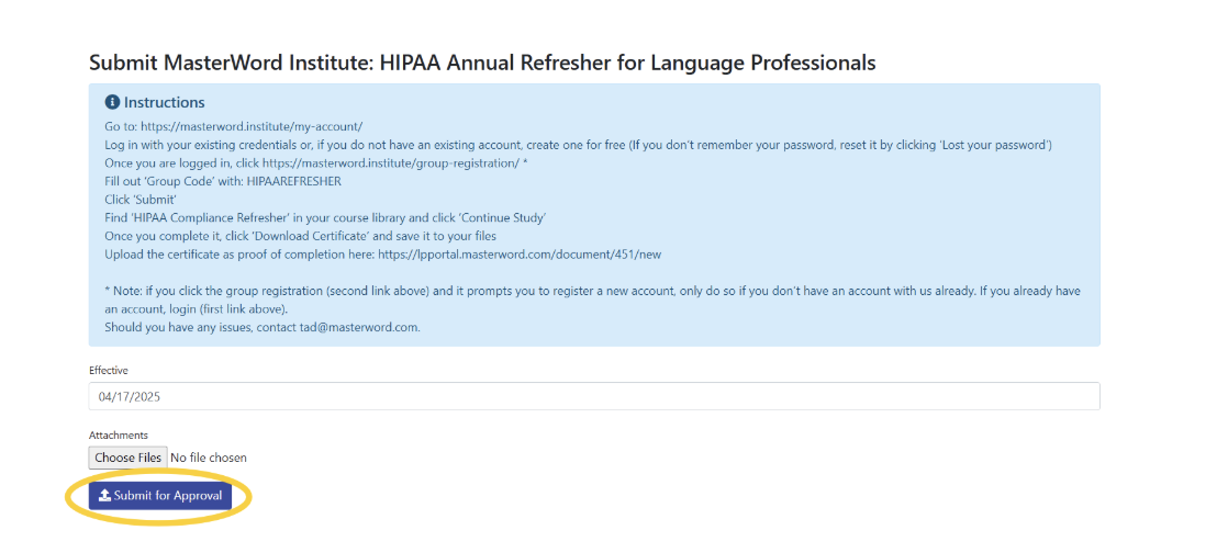 If you have questions or need assistance with accessing and completing the course on MasterWord Institute, email us at [email protected]